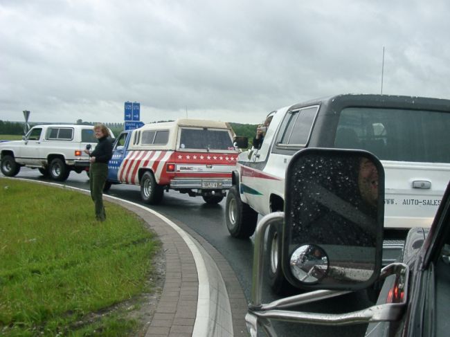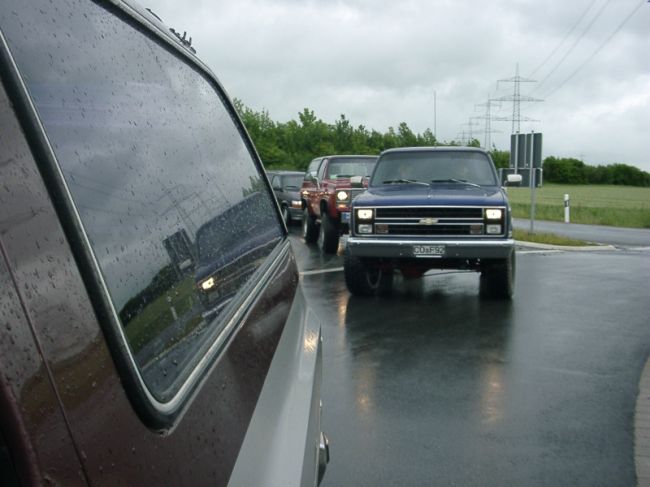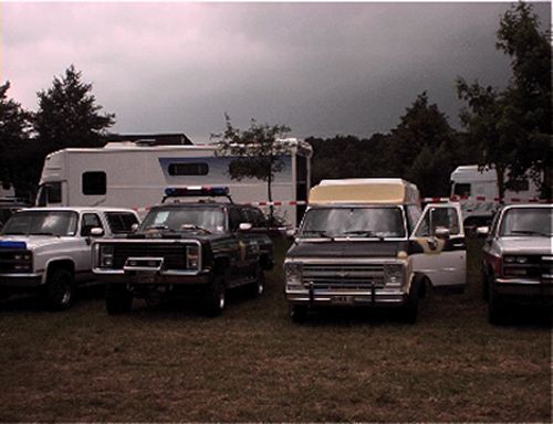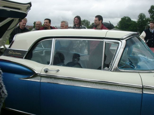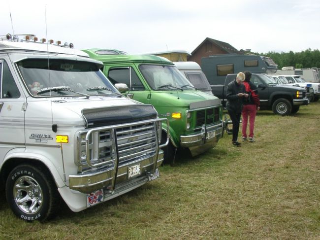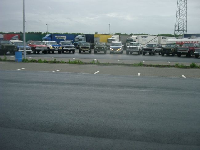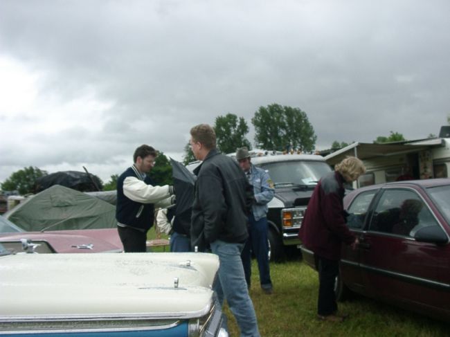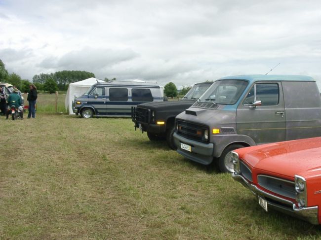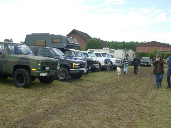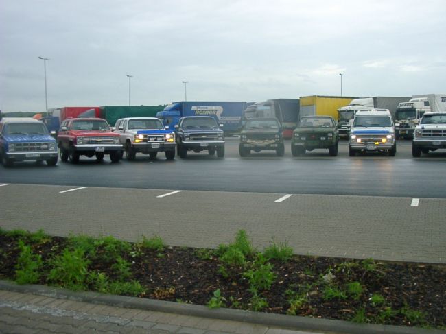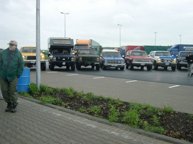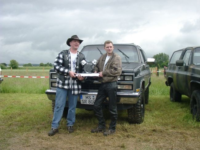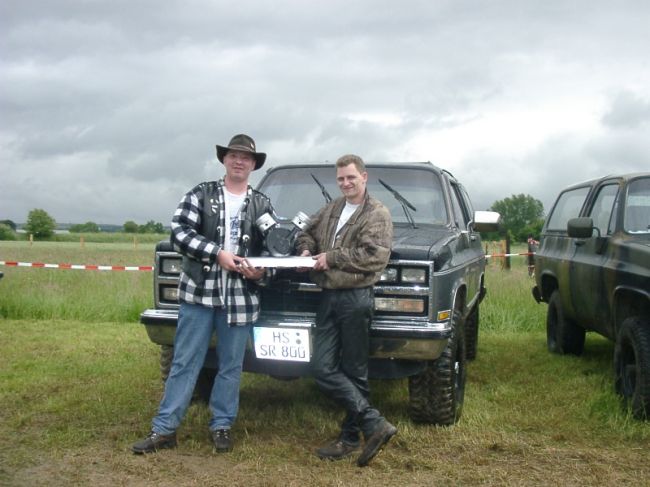 Vom 02. bis 04. Juni 2001 fand im Reitsportzentrum Füllersheide das 1. Paderborner US-Car-Treffen statt. Es war leider total verregnet, aber alle Beteiligten hatten wohl ihren Spaß (haben zumindest alle gesagt). Mit knapp 60 Fahrzeugen war die Resonanz für uns Veranstalter überwältigend, mit so einer Menge hätten wir niemals gerechnet. Zur Belohnung haben wir von unserer süddeutschen Fraktion auch eine tolle Trophäe bekommen. Ist doch auch mal nett, wenn die Gäste selber Preise mitbringen, gell?